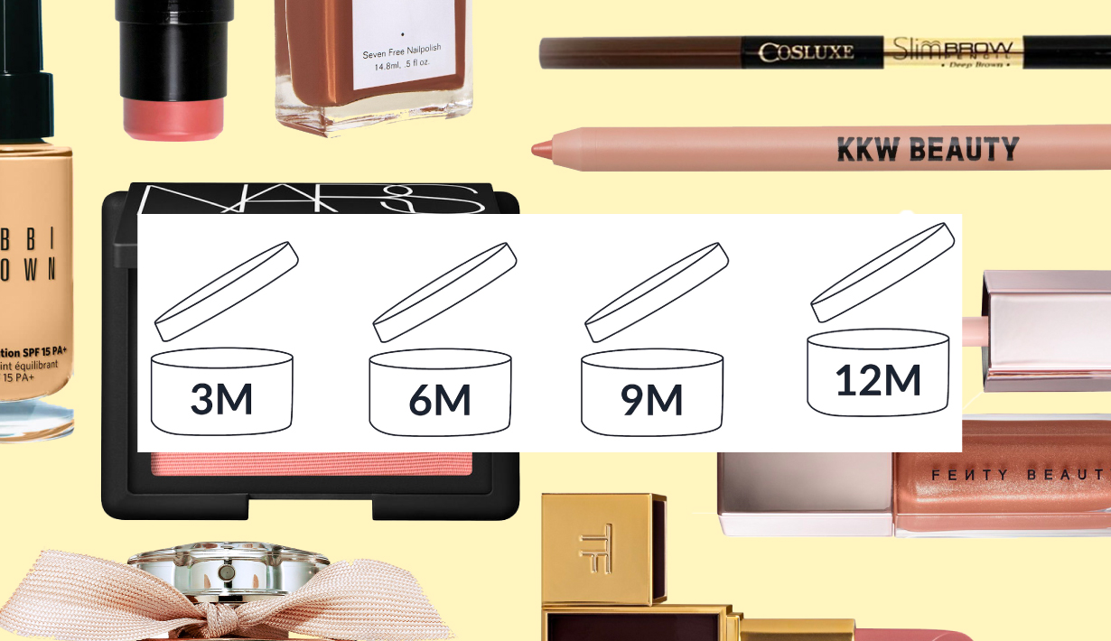 ทิปส์ง่ายในการดูว่าเครื่องสำอางที่เราใช้จะได้อยู่ต่อหรือว่าต้องลงถังขยะนั้น ดูได้จากสัญลักษณ์รูปกระปุกผลิตภัณฑ์ไซส์จิ๋วที่ถูกเปิดออก พร้อมตัวเลขและตัวอักษร M ซึ่งย่อมาจาก Month อย่างเช่น 12M (1 ปี) หรือ 24M (2 ปี) เป็นต้น ฝาของสัญลักษณ์จิ๋วที่ถูกเปิดออกเล็กน้อยหมายถึง เครื่องสำอางชิ้นนั้นมีอายุไขตามเวลาที่ระบุ ‘หลังถูกเปิดใช้งาน’ แล้ว อย่างไรก็ตามหากเมกอัพหรือสกินแคร์ที่เราใช้ยังไม่ได้ถูกใช้ สาวๆ สามารถกะอายุไขการใช้งานได้ตามนี้