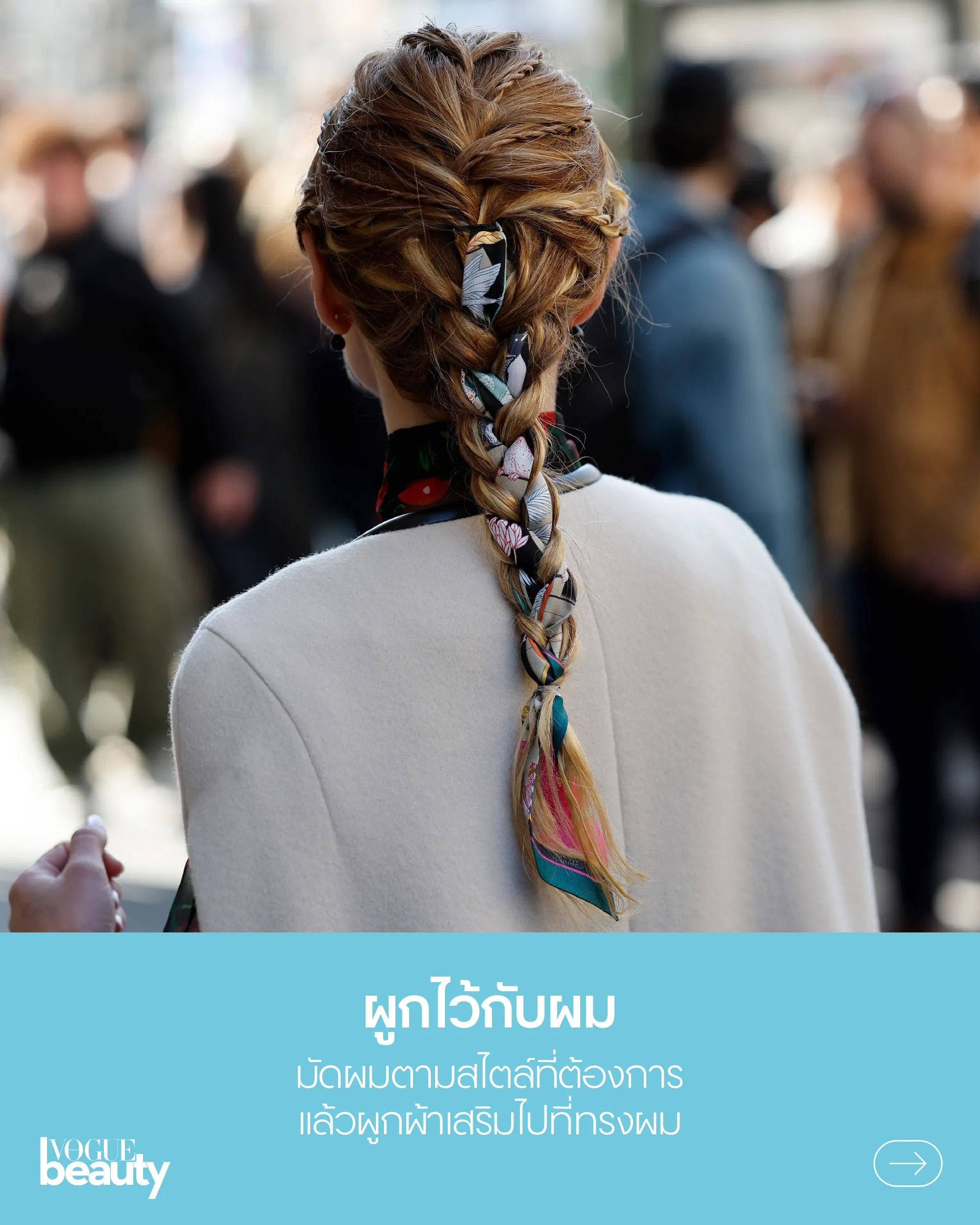 2.ใช้ผ้าโพกศีรษะผูกไว้กับผม