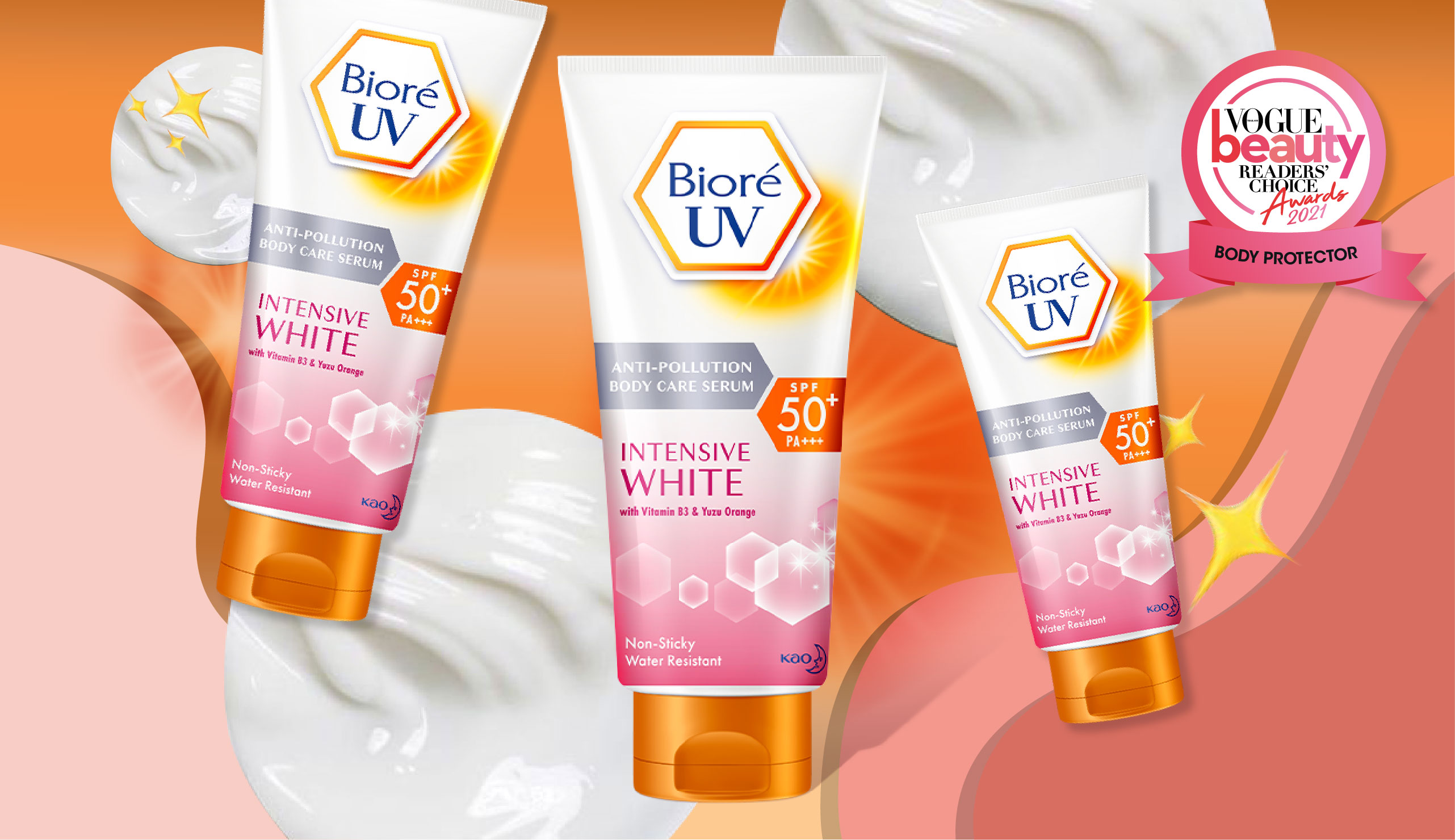 เวียนมาถึงงานประกาศรางวัล Vogue Beauty Reader’s Choice Awards ปี 2021 ที่ทีมโว้กบิวตี้จัดขึ้นเพื่อเฟ้นหาผลิตภัณฑ์ที่ถูกใจสาวๆ มากที่สุดกันอีกหนึ่งรอบ และสำหรับหมวดของ "Body Protector กันแดดสำหรับผิวกาย เนื้อเบาไม่เหนอะผิว กันเหงื่อได้ดี ไม่มันเยิ้มระหว่างวัน" ในปีนี้ก็ตกเป็นของ Biore กันอีกรอบกับกันแดดสูตร UV Anti-Pollution Body Care Serum Intensive White SPF50+ PA+++ ที่เรียกได้ว่าสอยรางวัลกลับบ้านแทบทุกปี