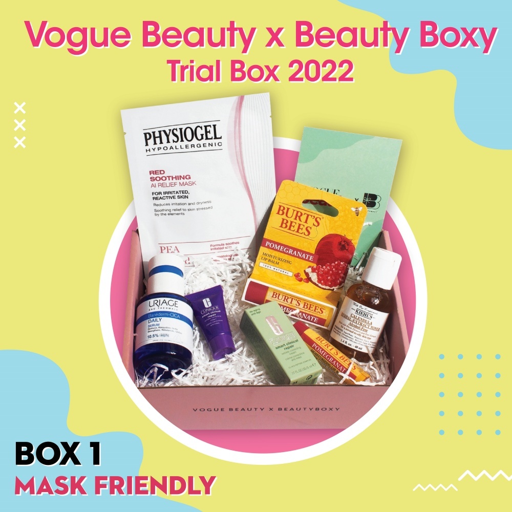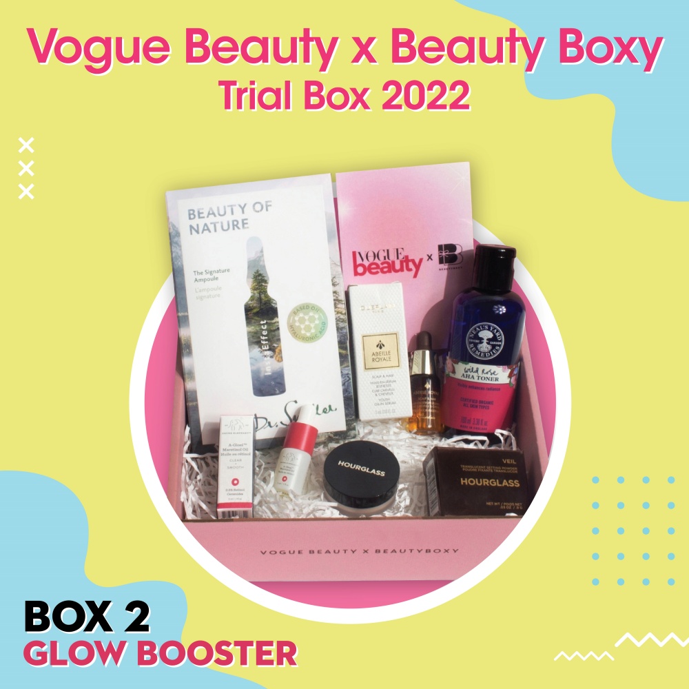 - กล่อง Vogue Beauty x Beauty Boxy Trial Box 2022 จำนวน 100 กล่อง แบ่งเป็นกล่องในธีม Glow Booster เพื่อผิวโกลว์เป็นธรรมชาติ จำนวน 50 กล่อง และกล่องธีม Mask-Friendly เพื่อปลอบประโลมผิว จำนวน 50 กล่อง