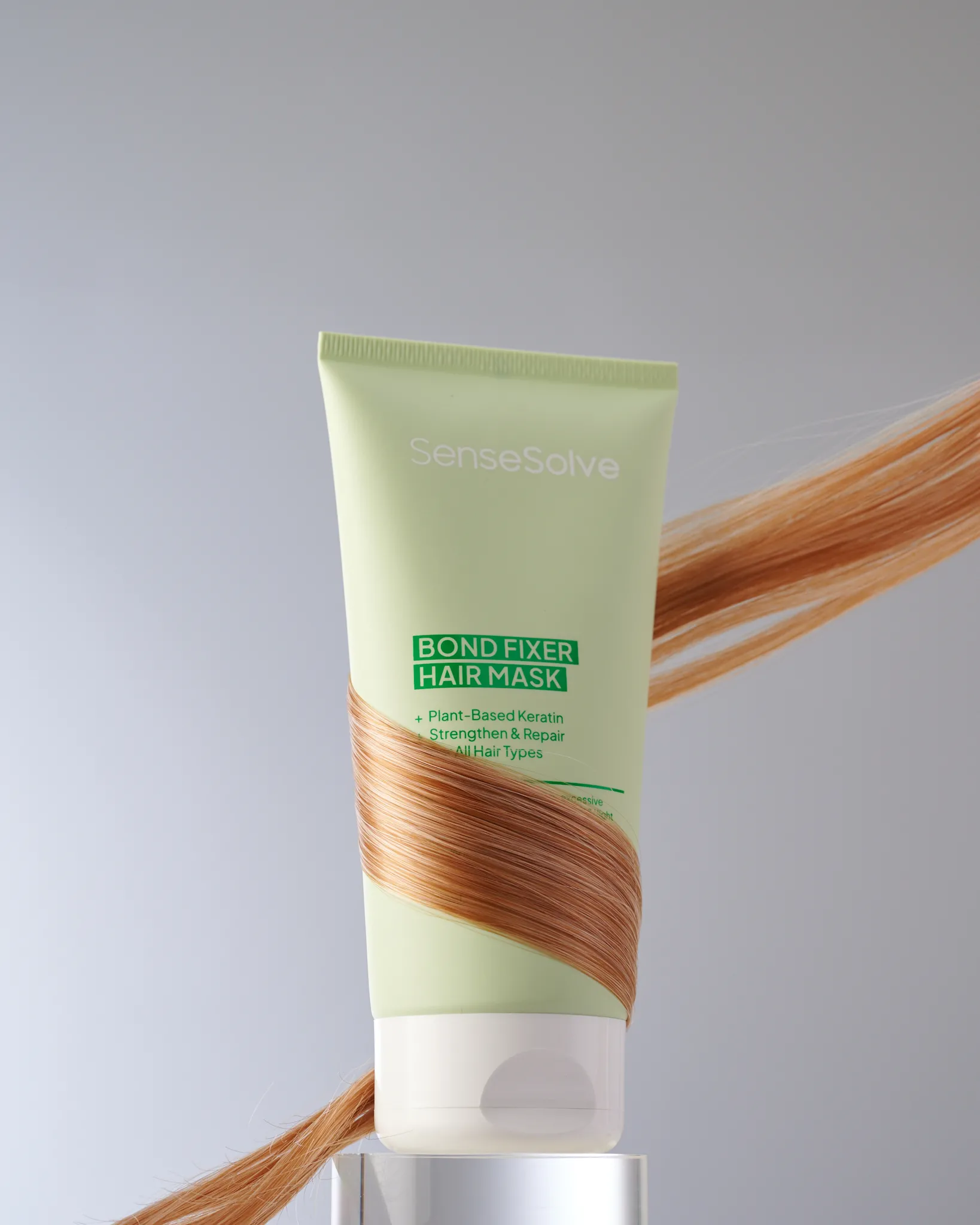 Bond Fixer Hair Mask ผลิตภัณฑ์จากแบรนด์น้องใหม่อย่าง SenseSolve แบรนด์ Personal Care ใหม่ ที่มีเป้าหมายเน้นแก้ไขปัญหาโดยการคิดค้นสูตรสินค้าระดับ Professional อุดมไปด้วยสารสกัดพิเศษทั้ง 9 ชนิดที่จะเข้าไปช่วยซ่อมแซมส่วนที่เสียหายสึกหรอของเส้นผมจากภายในสู่ภายนอก ซึ่งมีฮีโร่ของสารสกัดสำคัญที่ขาดไม่ได้อย่าง KERESTORE และ KERAVIS PE โปรตีนและเคราตินที่ถูกสร้างขึ้นโดยการเลียนแบบเคราตินในเส้นผมจริง ทำหน้าที่เข้าไปซ่อมแซมเส้นผมที่เสียและมีการเปิดเกล็ดของผม สามารถซึมซาบเข้าสู่แกนผมได้ดี นอกจากนี้ยังมีสารสกัดจากพืชตัวอื่นๆ อาทิ Jojoba, Palm oil , Rapeseed oil, และ Brassicaceae oil ที่มีคุณสมบัติทั้งเสริมสร้างเกราะป้องกันของหนังศีรษะ ป้องกันความร้อนจากแสงแดด เพิ่มความชุ่มชื้น ลดแรงเสียดสีจากการหวี และลดการเกิดรังแค รวมถึงช่วยทำให้เส้นผมมีน้ำหนักไม่ชี้ฟูได้อีกด้วย