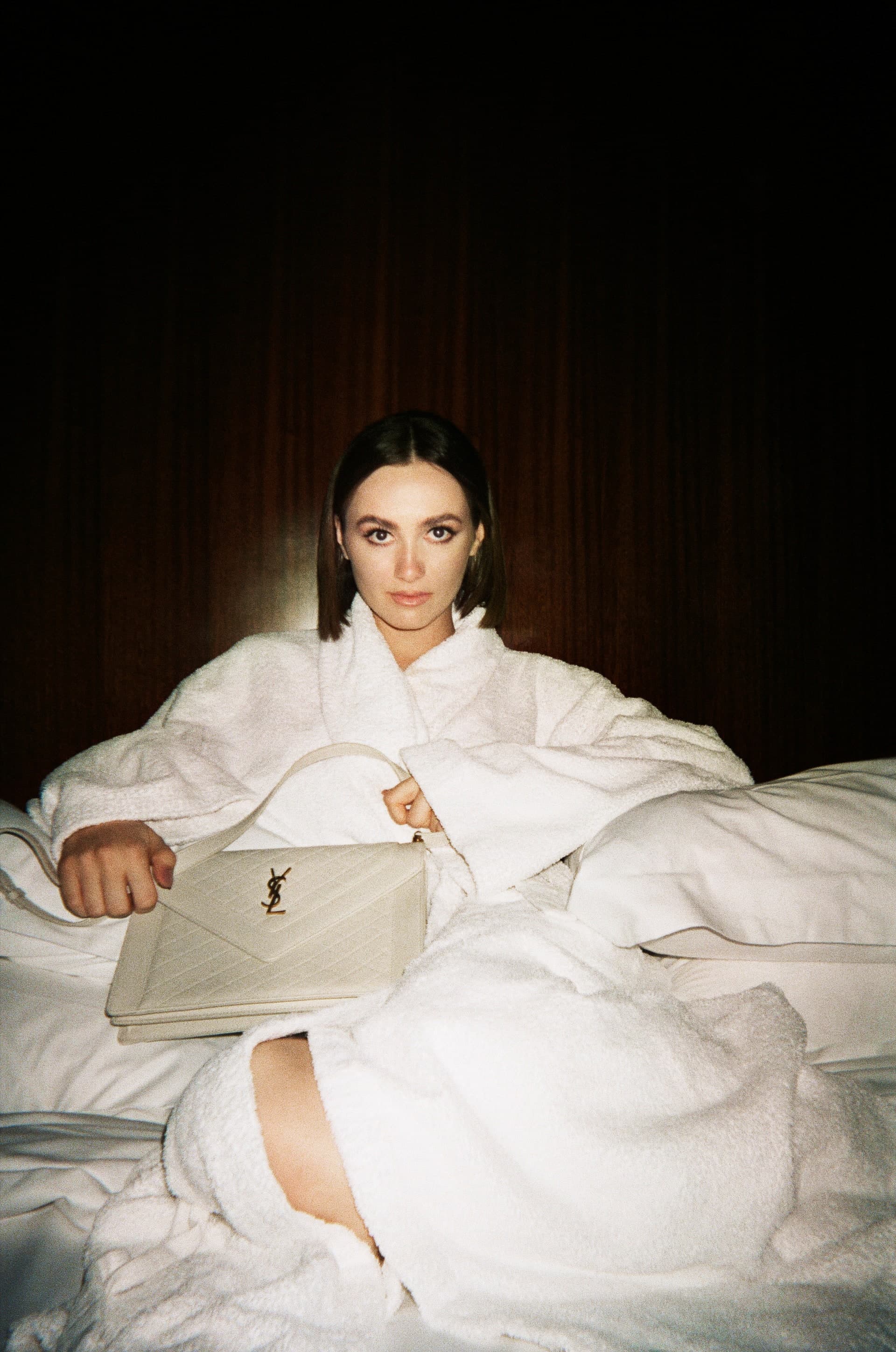 งานนี้ Saint Laurent กับทางโว้ก อเมริกา ร่วมกันสร้างสรรค์ประสบการณ์พิเศษพร้อมเก็บภาพการเตรียมตัวเข้าชมปารีสแฟชั่นวีกครั้งแรกของมอด อาพาทอว์ ด้วยการจัดชุดบอดี้สูทพื้นขาวลายดอกไม้ พร้อมเข็มขัดหนังโอเวอร์ไซซ์สีแดง คู่กับรองเท้าส้นสูงสีดำสุดคลาสสิกจากแซงต์ โลรองต์ ตบท้ายด้วยสูทเบลเซอร์สีดำเพิ่มความเรียบหรูและความอบอุ่นระหว่างที่นั่งติดขอบรันเวย์ นักแสดงดาวรุ่งกล่าวถึงความรู้สึกที่ได้สวมชุดของแบรนด์ว่า “ฉันไม่ได้สวมชุดบอดี้สูทแบบนี้มานานมากแล้วตั้งแต่สมัยเล่นละครเวทีเรื่อง Cats ในช่วงไฮสคูล ที่จริงแล้วไม่คิดว่าฉันเคยใส่ชุดที่มีความโดดเด่นแบบนี้มาก่อน แต่ถ้าจะให้ใส่ชุดแบบนี้ก็คงต้องเป็นงานพิเศษแบบวันนี้แหละค่ะ” และยังแชร์ประสบการณ์อีกว่า “มันเป็นแฟชั่นวีกครั้งแรกของฉัน มันงดงามมาก ไม่เคยพูดคำนี้มาก่อนแต่มันสวยจนแทบหยุดหายใจเลยค่ะ” นอกจากนี้เธอยังปิดท้ายค่ำคืนกับการแชร์เตียงร่วมกับกระเป๋าแซงต์ โรลองต์สีขาวใบโปรดของเธออีกด้วย