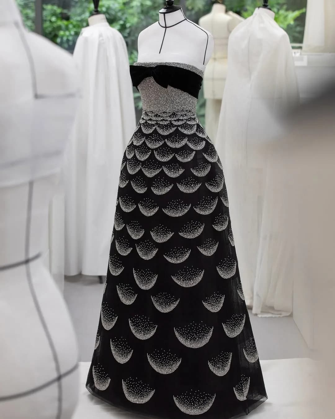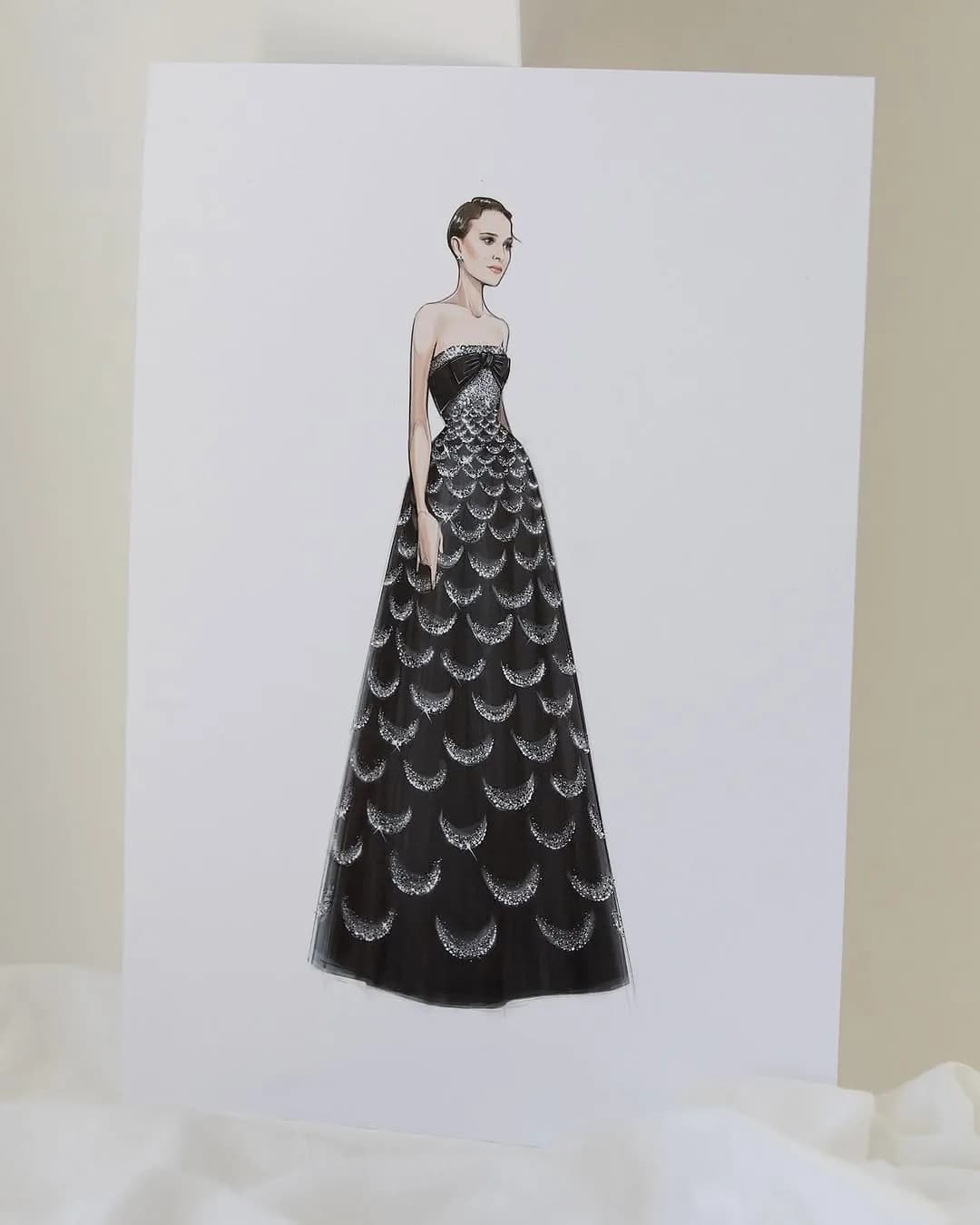 สำหรับชุดดังกล่าวจากการสร้างสรรค์ของแบรนด์ Dior นั้นคือชุดเดรสสีดําเกาะอก ท่อนบนปักประดับคริสตัลสีเงินระยิบระยับ พร้อมด้วยการการตกแต่งโบว์กํามะหยี่สีดําขนาดใหญ่ ช่วงกระโปรงที่มีซิลูเอตไม่บานมากจนเกินไป ประดับด้วยรายละเอียดแวววาวสีเงินของคลิสตัลหลายสิบชิ้น ซึ่งถูกออกแบบให้เป็นภาพปรากฏคล้ายกับเกล็ดปลา เข้ากับเมืองคานสื ซึ่งเป็นสถานที่ติดชายฝั่งทะเลของประเทศฝรั่งเศส ซึ่งโส้กไปพลาดนำภาพของเธอมาให้ชมกันแล้วที่นี่