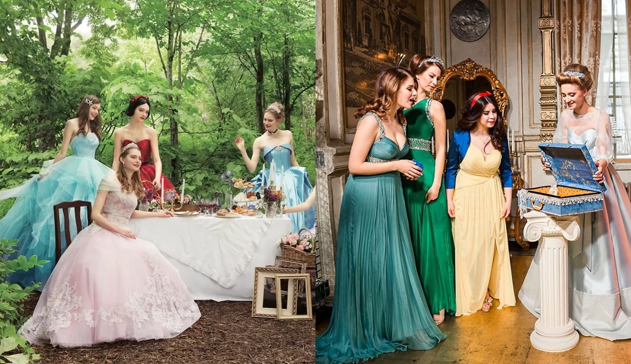 ชุดเพื่อนเจ้าสาวธีมเทพนิยายคือความฝันวัยเยาว์ของเด็กผู้หญิง และที่ฮิตกันมากๆ น่าจะเป็นหมู่มวลเจ้าหญิงดีสนีย์ ลองจินตนาการว่าหากเจ้าสาวคือเจ้าหญิงเงือกน้อยแอเรียล ในฐานะที่เราคือเพื่อนเจ้าหญิงร่วมค่ายเดียวกัน ชุดเพื่อนเจ้าสาวจะกลายเป็นชุดเพื่อนเจ้าหญิงในที่สุด ความสนุก แฟนตาซีก็เริ่มขึ้นอย่างแน่นอน เพื่อนสาวทั้งหลายจะต้องแบ่งกันแล้วว่าแต่ละคนจะแต่งเป็นเจ้าหญิงองค์ไหน ต้องยอมรับว่าการกำหนดธีมแบบนี้สนุกก็จริงแต่ก็ลำบากไม่ใช่น้อย ทว่าเพื่อนเจ้าสาวเงือกของพวกเรา ออโรร่า และสโนไวท์คงจะพร้อมใจกันเรียกสัตว์ป่ามาตัดชุดให้ แม้ในโลกแห่งความจริงนั้นคือการหาร้านเช่าชุดเจ้าหญิงก็ตาม หรือหากเพื่อเจ้าสาวคนไหนมีหัวศิลป์สักหน่อย อาจจะดึงเอกลักษณ์ของคาแร็กเตอร์ในเทพนิยายตัวนั้นๆ มาประดับบนชุด หรือแต่งเสริมเติมเอกลัก