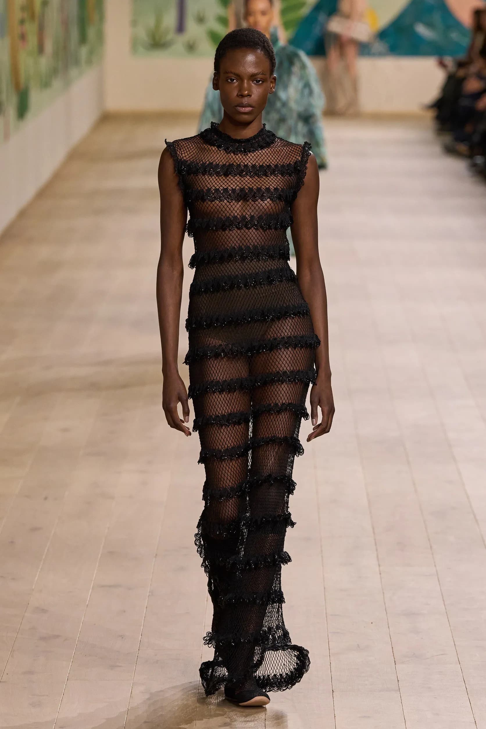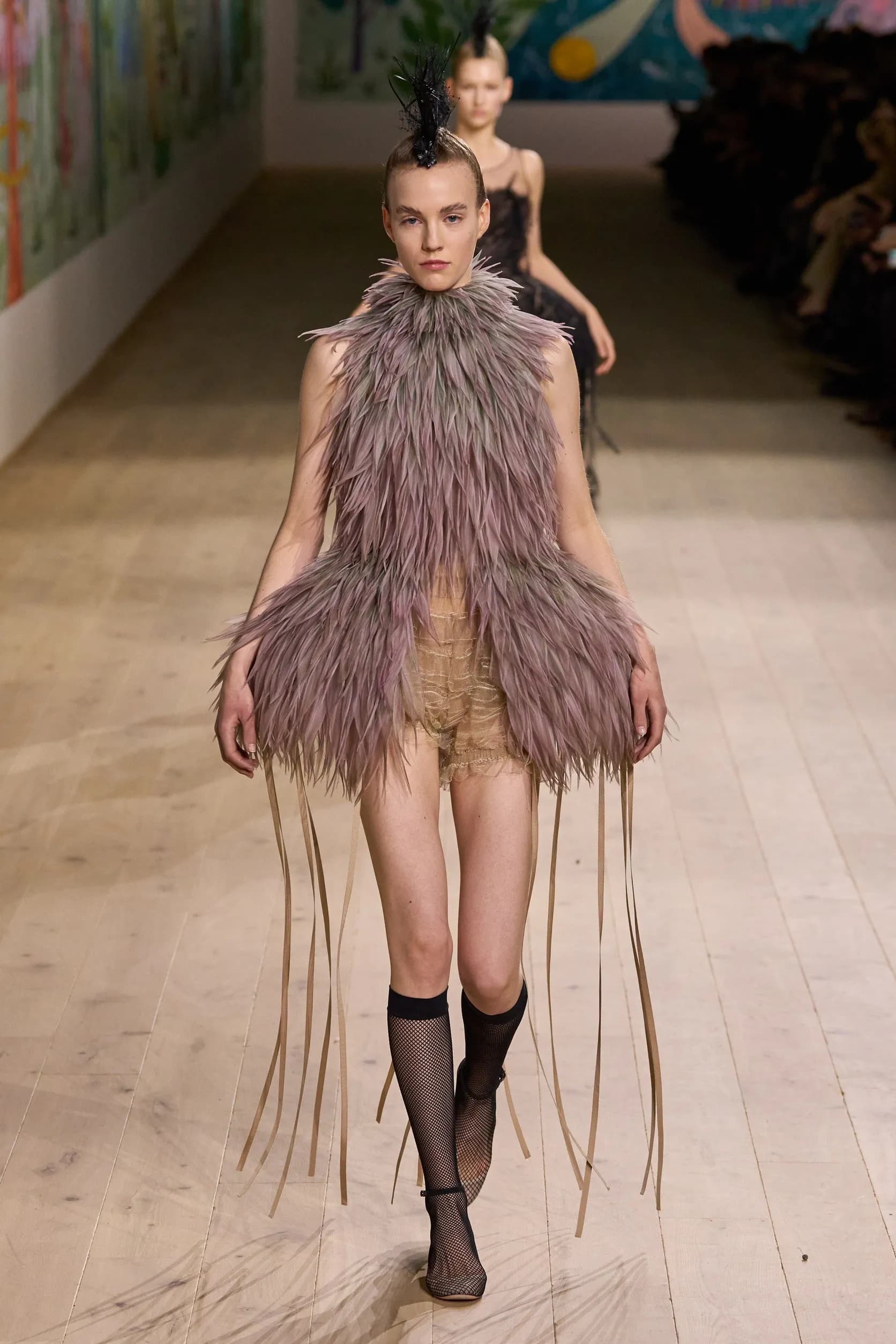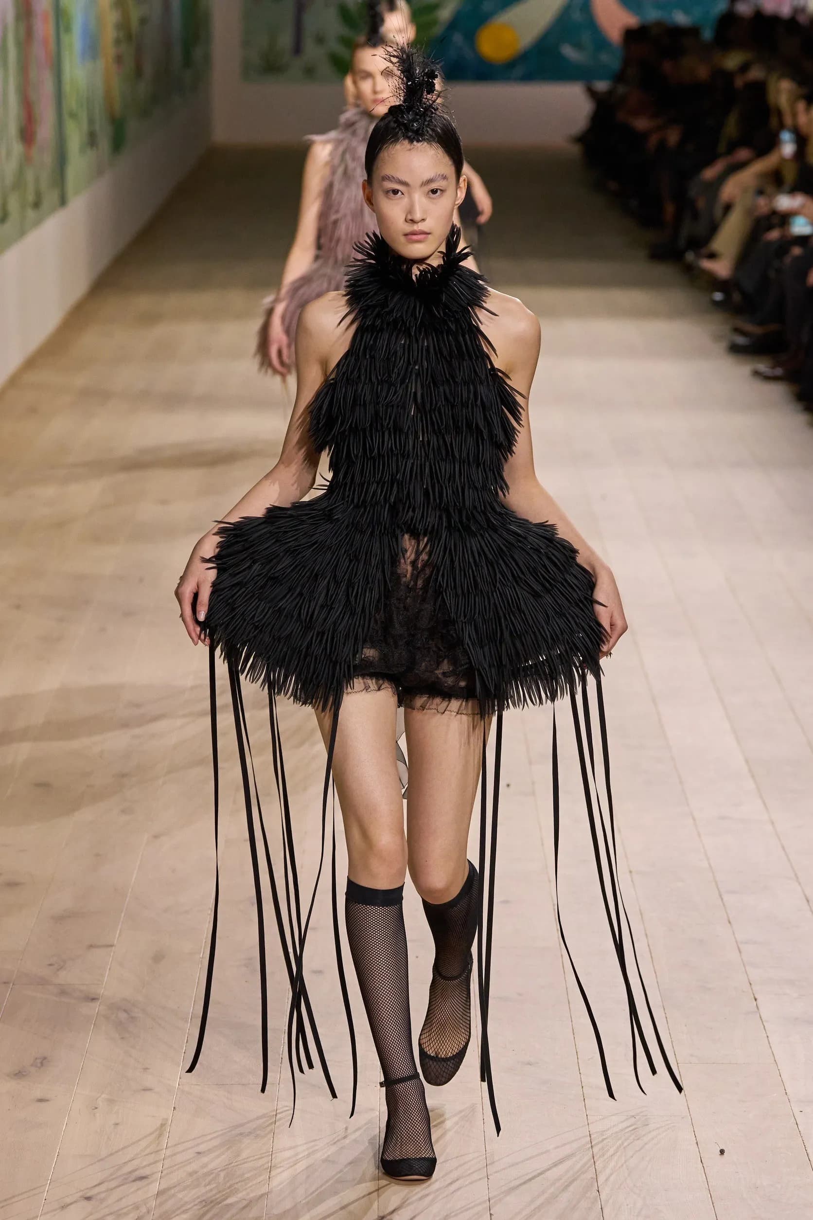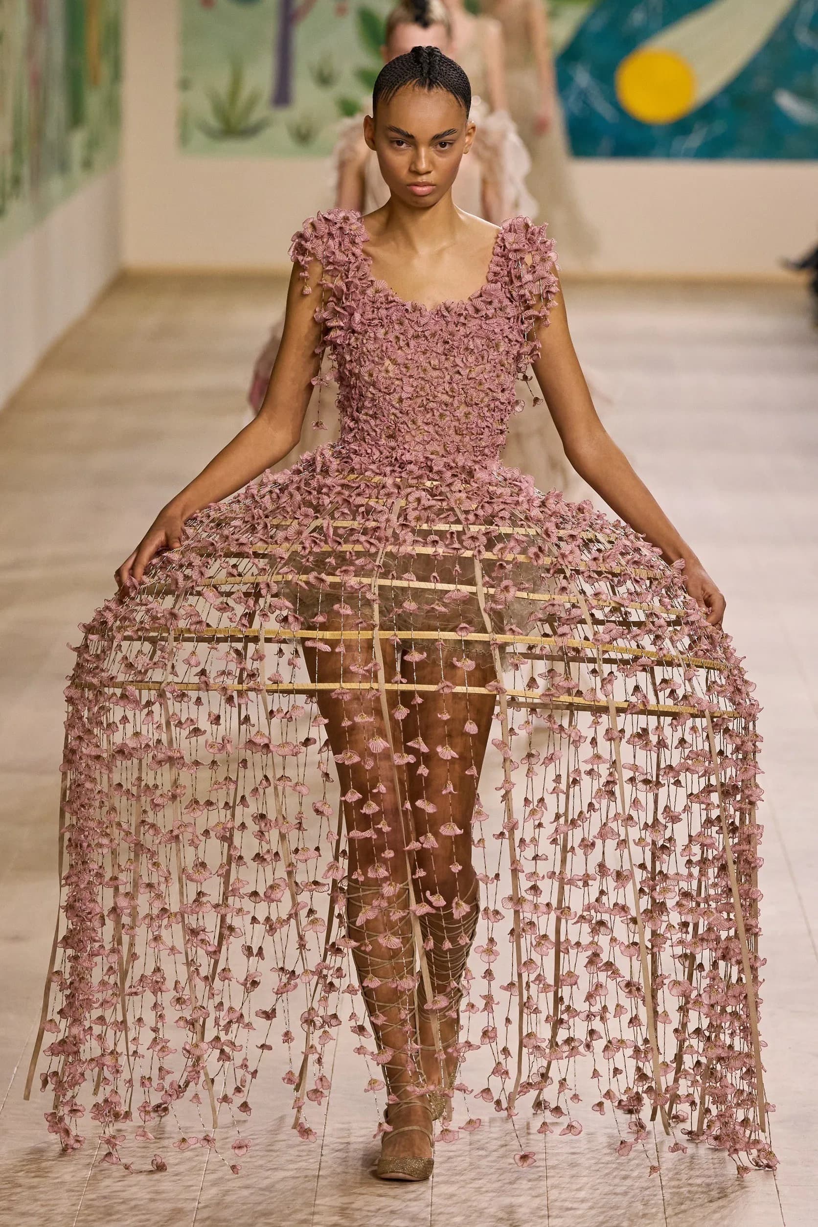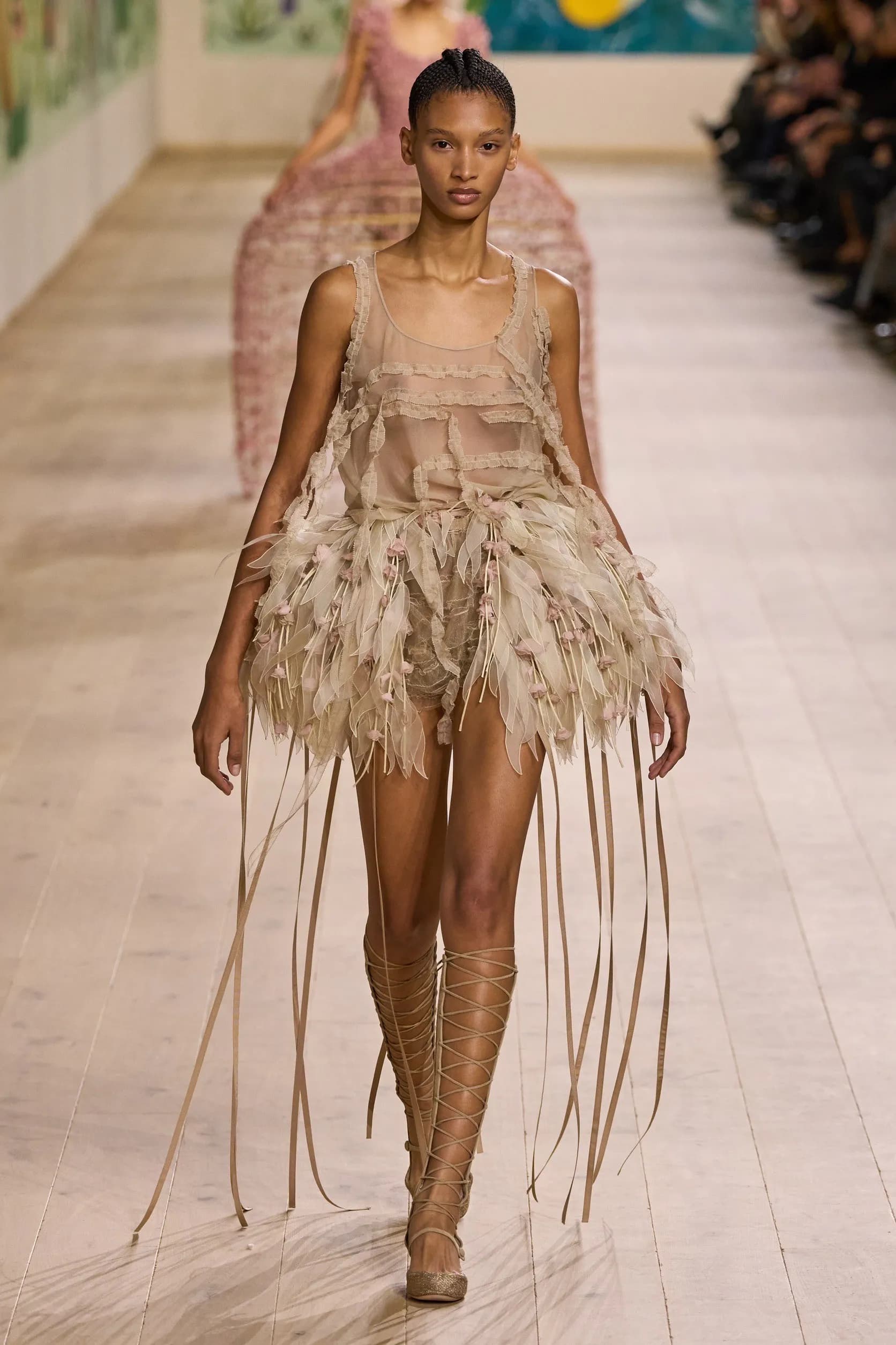 Trepèze Line กลายมาเป็นหัวใจหลักสำคัญ Dior ของคอลเล็กชั่นโอตกูตูร์ ฤดูใบไม้ผลิ/ฤดูร้อน 2025 พร้อมย้อนอดีตสู่ความเกรีียงไกรในยุคสมัยการกุมบังเหียนของ Yves Saint Laurent เมื่อช่วงปลายทศวรรษ 1950s ดูเหมือนว่า Maria Grazia Chiuri จะปรับโฉมรูปแบบของซิลูเอตให้เข้ากับยุคสมัยผ่านการเปลี่ยนแปลงสู่แพตเทิร์นเสื้อผ้าเด็ก โดดเด่นด้วยงานโครงสร้างชุดที่ถูกเปิดเปลือยให้เห็นชัดเจน เรื่อยไปจนถึงงานปักประดับฟลอรัลและลูกไม้พลิ้วไหว ที่ยังคงสะท้อนกลิ่นอายแบบเฟมินีนที่มาเรียถนัด นอกจากนี้การแบ่งสัดส่วน การครอป หรือแม้กระทั่งระดับความยาวของชุดยังเป็นไฮไลต์เด่นที่สะท้อนภาพความงดงามของผลงานตัดเย็บชั้นสูงครั้งนี้ ตัดกับเครื่องประดับศีรษะที่ให้กลิ่นอายความพังก์ผสมผสานความเนี้ยบสไตล์ซาร์ทอเรียล แนวทางแฟชั่น 2 รูปแบบที่สวนทางแต่บรรจบกัน ณ โชว์ครั้งนี้พอดิบพอดี คริโนลีน กระโปรงสุ่ม และกลิ่นอายของชุดสำหรับสตรียุคเก่าถูกรื้อสร้างใหม่ นำเสนอพร้อมกับผลงานการรังสรรค์ชิ้นไอคอนิกของ Christian Dior อย่างบาร์แจ็กเก็ต นอกจากนี้ยังมีมินิเดรสตัวจิ๋วที่สะท้อนภาพความงดงามของเมซงในการผลัดเปลี่ยนยุคสมัยได้เป็นอย่างดี ติดตามชมลุคทั้งหมดของโชว์นี้ได้ที่ด้านล่าง