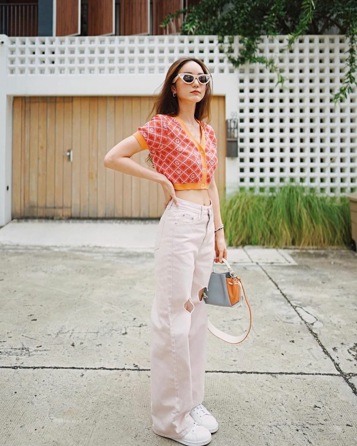 ต่อด้วยลุคที่สามในการแมตช์ลุคสุดฮิปด้วยไอเท็มอย่างกางเกงยีนส์ตัวโคร่ง ส่วนท่อนบนใส่เสื้อครอปรัดรูปแขนยาวนำเสนอความเป็นสาวเท่แต่ก็มีความเซ็กซี่ไว้ด้วยกันอย่างลงตัว