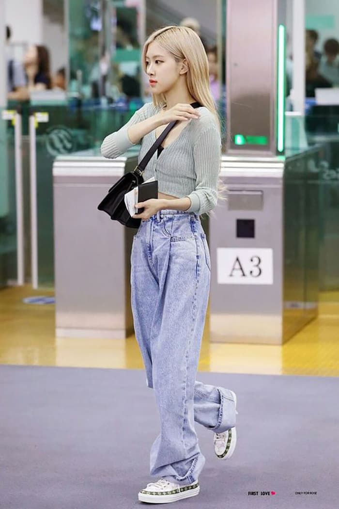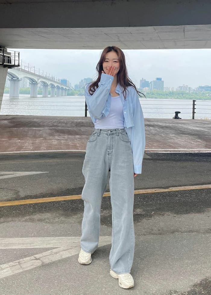 ต่อด้วยลุคที่ห้ากับการหยิบกางเกงยีนส์ทรงกระบอกมาจับคู่กับเสื้อเชิ้ตแขนยาวที่เลเยอร์เสื้อครอปสายเดี่ยวไว้ด้านใน ได้เป็นอีกลุคเก๋ที่เหมาะจะแต่งไปเที่ยวในวันผักผ่อน