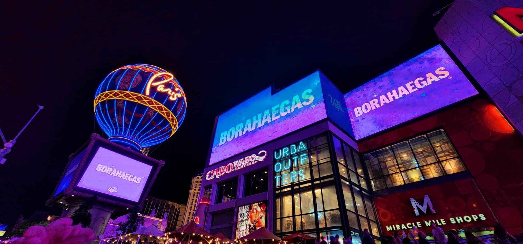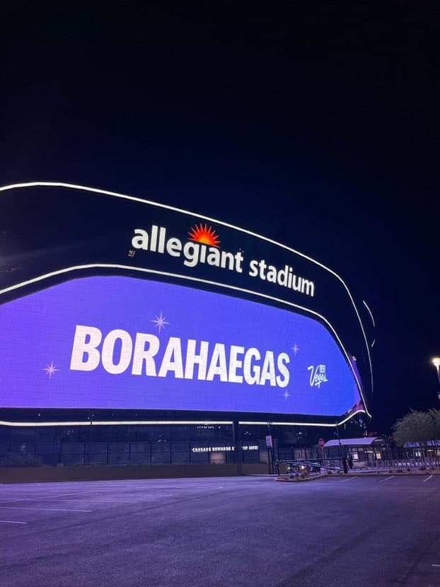 การมาเยือนลาสเวกัสครั้งนี้ของวงบีทีเอส แน่นอนว่าเกิดปรากฏการณ์ครั้งใหม่อีกครั้งเมื่อต้นสังกัด HYBE ได้รังสรรค์เมืองแห่งแสงสีขึ้นใหม่เพื่อต้อนรับพวกเขาด้วยการแปลงโฉมลาสเวกัสให้กลายเป็น ‘BTS in the City’ หรือเทศกาล ‘Borahaegas’ (อ่านว่า ‘โบราเฮกัส’ มาจากประโยคบอกรักระหว่างบีทีเอสกับอาร์มี่คำว่า Borahae รวมกับคำว่า Las Vegas ) โปรเจกต์ต้อนรับบีทีเอสที่พร้อมมอบความบันเทิง บริการ และสิ่งอำนวยความสะดวกให้กับอาร์มี่ที่เดินทางมาจากทั่วทุกมุมโลก รวมถึงการขึ้นป้ายบิลบอร์ดต่างๆ ด้วยการเปิดไฟสีม่วงตระการตา และจอโฆษณาพื้นสีม่วงพร้อมข้อความ ‘BORAHAEGAS’ ไปทั่วทั้งเมืองตลอดวันที่ 5-17 เมษายน เพื่อเป็นการเฉลิมฉลองให้กับอาร์มี่และคอนเสิร์ตในครั้งนี้