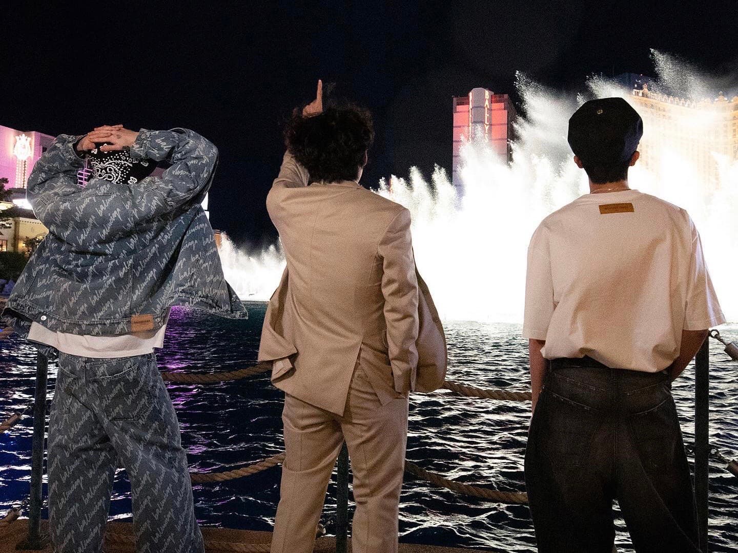 Jungkook, V และ J-Hope แห่งวง BTS ท่องราตรีชมแสงสีในยามค่ำคืนของเมืองลาสเวกัส / ภาพ: Panthip
