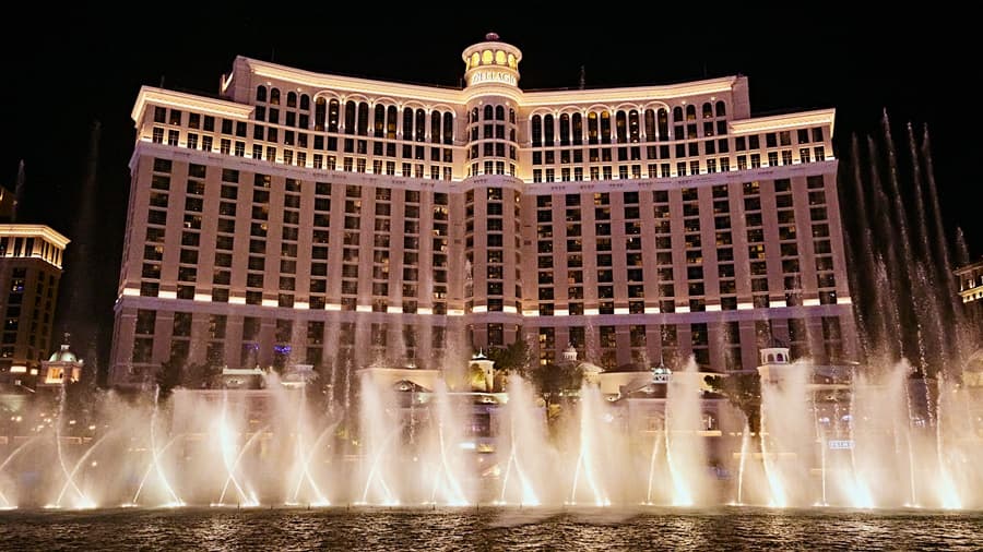การแสดงน้ำพุดนตรีเพลง Dynamite และ Butter หน้าโรงแรม Bellagio ในเมืองลาสเวกัส / ภาพ: Big Hit Music
