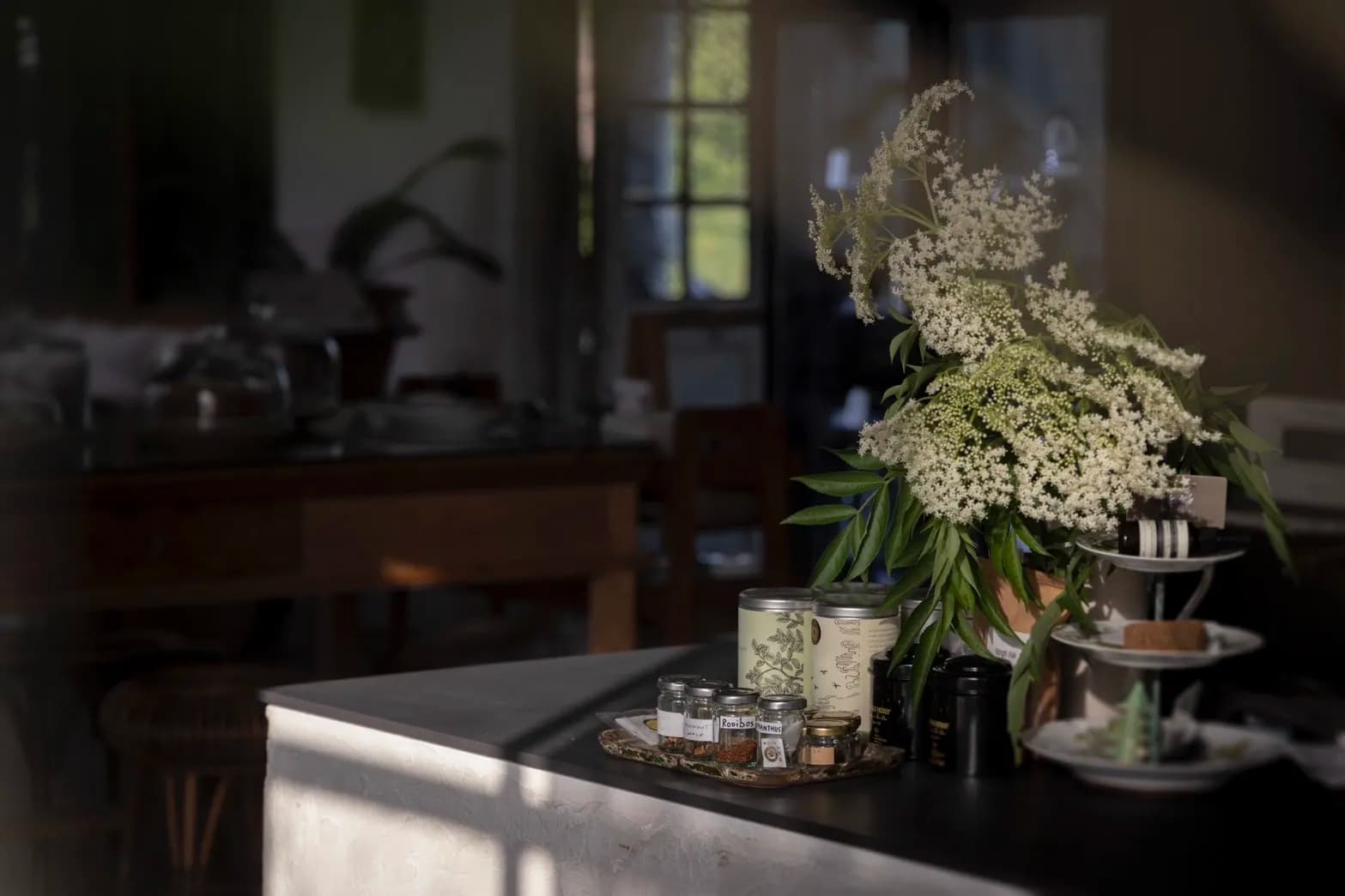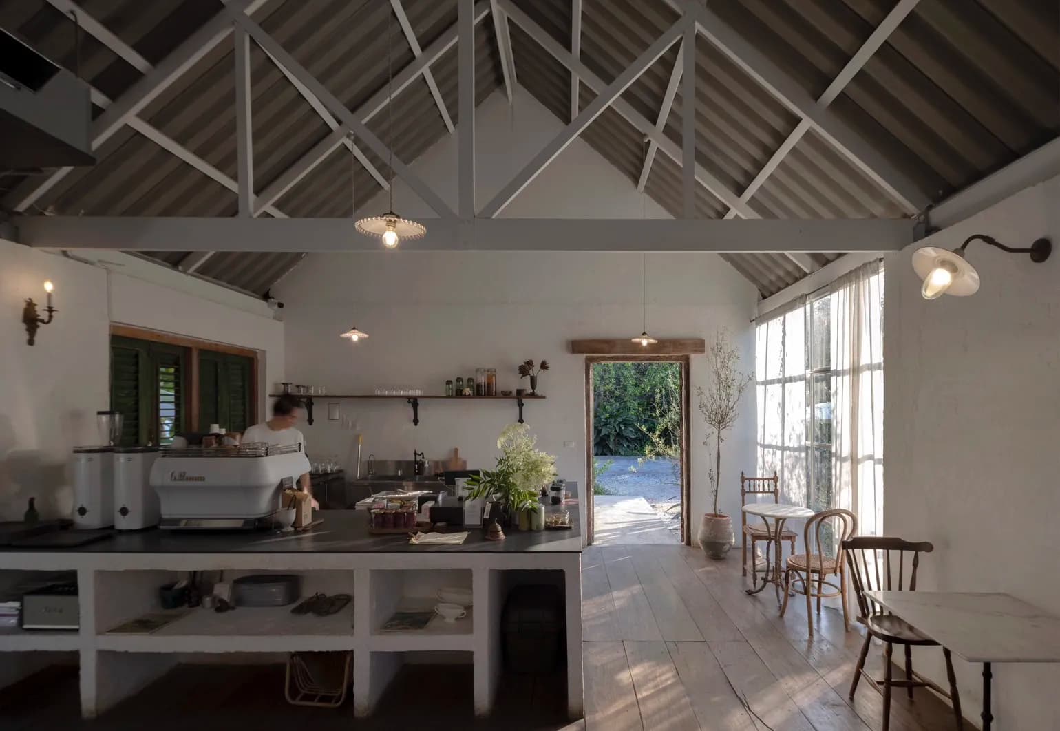 คาเฟ่ในบ้านสีขาวสุดมินิมัล ที่มีความเรียบง่ายแต่กลับคงเสน่ห์ของธรรมชาติรอบข้าง และสวนสามพรานไว้ได้อย่างสมบูรณ์แบบ ไม่ว่ามองไปทางไหนก็รู้สึกสดชื่น เนื่องด้วยมีต้นไม้ดอกไม้รายล้อมให้ความสงบร่มรื่น เหมาะกับการมานั่งพักผ่อนในช่วงวันหยุดมีหลากหลายมุมที่นั่งทั้งอินดอร์ หรือใครเป็นสายเอาต์ดอร์คงไม่ผิดหวังอย่างแน่นอน พร้อมกับมีมุมสวยๆ มากมายที่มองไปทางไหนก็น่าถ่ายรูปทำคอนเทนต์ รวมถึงมีพื้นที่ในการจัดงานหลากหลายแบบ ทั้งสตูดิโอ งานจัดเลี้ยง จัดงานแต่งงาน และจัดงานนิทรรศการต่างๆ สถานที่แห่งนี้ออกแบบ และจัดสวนโดย วิทย์-ศิริวิทย์ ริ้วบำรุง ตั้งใจดีไซน์สถานที่ให้มีกลิ่นอายสไตล์โพรวองซ์ ตามแบบบ้านชนบททางตอนใต้ของประเทศฝรั่งเศส ผสมผสานกลิ่นอายของสแกนดิเนเวีย ซึ่งไม่ว่าจะเป็นอินดอร์ก็จะยังเชื่อมโยงกับธรรมชาติ ด้วยกระจก และหน้าต่างรอบห้องเพื่อให้แสงธรรมชาติสาดส่องมาเสมอ และหากมองออกไปด้านนอกก็จะได้ชมวิวสวนพืชพรรณนานาชนิด เหมือนได้รับการบำบัดด้วยธรรมชาติ ข้าวของเครื่องใช้ และของตกแต่งแนววินเทจมาใช้ในการตกแต่งเป็นหลัก ส่วนไอเดียในการจัดวางสิ่งต่างๆ เปี่ยมไปด้วยมนต์เสน่ห์ของความคลาสสิก และเรื่องราวที่น่าสนใจอย่างอาหาร ขนม และเครื่องดื่ม เป็นสูตรเฉพาะของทางร้าน ใส่ใจตั้งแต่วัตถุดิบ และสวนผสมออร์แกนิกไร้สารเคมี ที่ปลูกเองภายในสวน Whispering Land หรือผลผลิตที่มาจากชุมชนที่เชื่อถือได้มาใช้ในคาเฟ่ ตรงตามคอนเซปต์ ‘From Garden To Table’ รวมถึงมีการสับเปลี่ยนหมุนเวียนเมนูไปตามฤดูกาลผลผลิตจากเกษตรกรรมมาใช้ในการรังสรรค์ความอร่อยให้ไม่น่าเบื่อ และไม่ซ้ำใครอีกด้วย