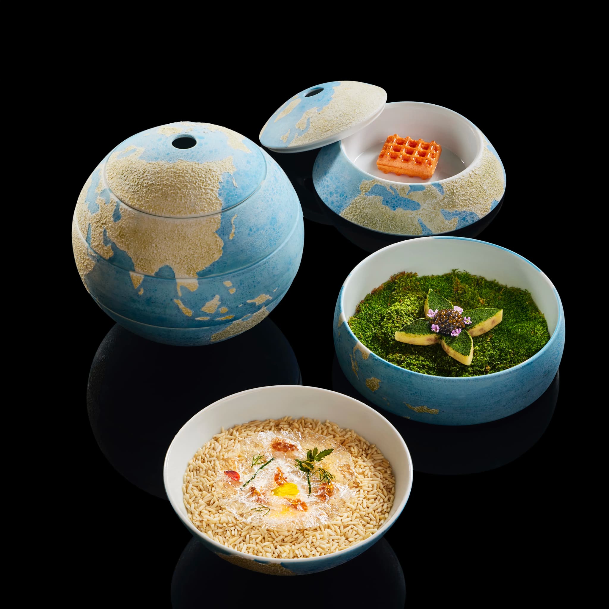 หนึ่งในเมนูที่น่าสนใจ ดูมีเอกลักษณ์โดดเด่นนั่นก็คือ “World Map” เผยแนวคิดเชฟเกี่ยวกับวัฒนธรรมการทานอาหารระดับโลกซึ่งสอดคล้องกับปรัชญา Spirit of Travel ของเมซงได้อย่างกลมกลืน โดยเมนูนี้พร้อมพาทุกท่านร่วมเดินทางไปยังหลากหลายทวีปในโลกเพื่อสัมผัสกับประสบการณ์การรับประทานอาหารที่น่าจดจำ เริ่มต้นที่ยุโรปกับ 'Carrot Waffle' ซึ่งเชฟ Gaggan แต่งแต้มจินตนาการใหม่ให้กับวาฟเฟิลจากเบลเยียม ก่อนพาทุกท่านเดินทางกลับมายังทวีปเอเชียด้วย 'Tartlet' ที่ให้รสชาติแบบยุโรปผสมญี่ปุ่นผ่านการผสมผสานกันของทูน่า แฮม และหัวหอม จากนั้นจึงเดินทางกลับมายังประเทศไทยด้วย 'Tom Yum Paper' กับการนำเสนอเมนูคลาสสิกอย่างต้มยำกุ้งในรูปแบบแห้งพร้อมกุ้งเต้น ดอกไม้แห้ง และส้มโอเชื่อม