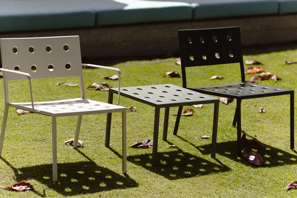 การผสมผสานเรื่องรายละเอียดของเส้นและรู จุดเด่นของเก้าที่จัดวางได้อย่างไร้ขีดจำกัดสามารถนำมาแมตช์กับคอลเล็กชั่น Balcony ได้อย่างลงตัว เก้าอี้ ม้านั่ง โต๊ะขนาดเล็ก ทั้งหมดถูกเจาะรูขนาดสมมาตรด้วยเลเซอร์ เมื่อนำไปวางในสถานที่กลางแจ้งจะได้พบกับมิติแห่งแสงและเงาอันโดดเด่น โดยเฉพาะอย่างยิ่งเมื่อจัดวางคู่กับงานดีไซน์จากคอลเล็กชั่น Palissade Park จะพบว่าแสงอันสาดส่องผ่านเส้นและรูจากเฟอร์นิเจอร์ทั้ง 2 รูปแบบก่อให้เกิดงานศิลปะที่ชวนสะกดตา มากไปกว่านั้นมันยังเป็นงานศิลปะที่มีฟังก์ชั่นการใช้งาน ณ สถานที่กลางแจ้งอย่างสมบูรณ์แบบ