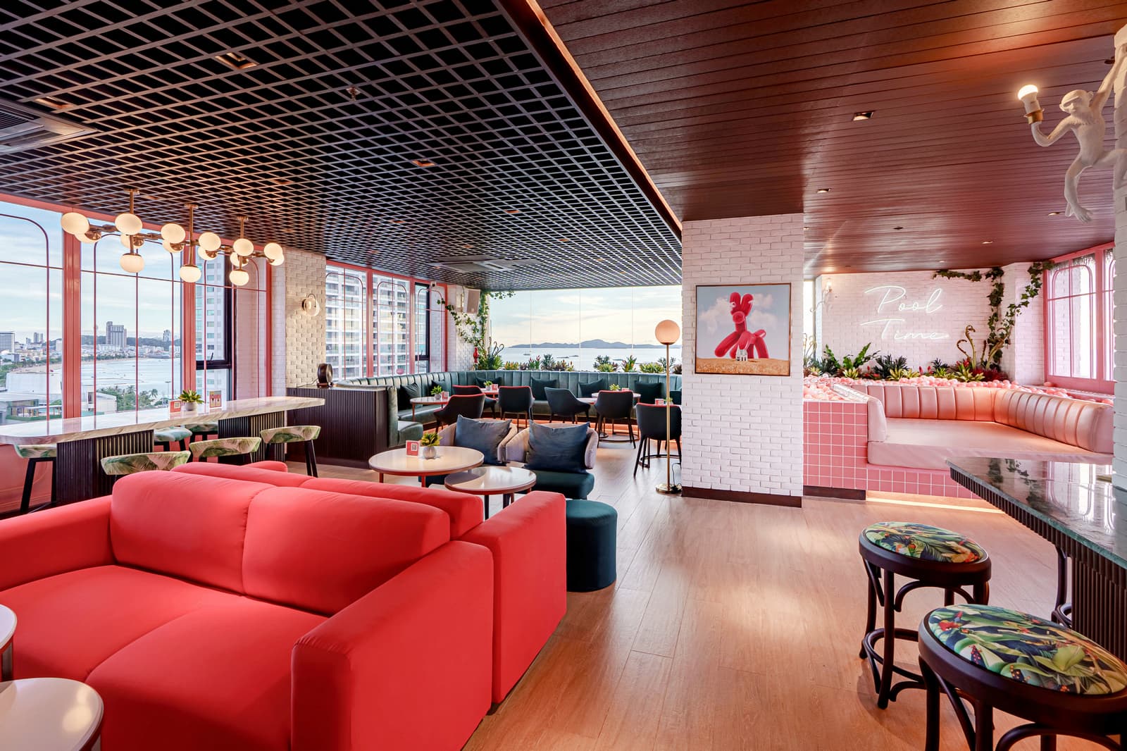 นอกจากนี้ ‘มิตร์ บีช โฮเทล’ ยังมีบอลรูมพื้นที่กว้าง ตกแต่งด้วยชานเดอร์เลียทรงคลื่นสุดอลังการ พร้อมรับจัดการสังสรรค์ต่างๆ ตั้งแต่งานสัมมนา งานแต่งงาน หรือมินิคอนเสิร์ตในห้องเก็บเสียง อีกไฮไลต์ของโรงแรมคือร้านอาหาร-รูฟท็อปบาร์เปิดใหม่อย่าง ‘Pippa’ ตั้งอยู่บนชั้น 19 แบ่งออกเป็น 3 ส่วนได้แก่ “Sunset Pippa” บาร์ติดระเบียง สามารถรับลมและดื่มด่ำไปกับวิวพระอาทิตย์ตกริมทะเล คู่กับไวน์และค็อกเทลสดชื่น และส่วน “Pippa House” ตกแต่งด้วยแนวป่าเขาธรรมชาติ ประดับด้วยโมทิฟสัตว์ป่า พร้อมเสิร์ฟอาหารสไตล์ ‘เอเชียน-ทวิตส์’ กับเมนูที่รังสรรค์ออกมาได้อย่างน่าทึ่ง ทั้งสเต๊กเนื้อนำเข้า อาหารญี่ปุ่น พาสต้า และอาหารทะเลระดับพรีเมียม และของหวานจานเด็ดไม่แพ้เมนูอื่น ปิดท้ายด้วยโซนลับสำหรับสายปาร์ตี้กับห้อง ‘Red Paradise’ เพื่องานสังสรรค์ส่วนตัว ให้บรรยากาศอบอุ่นด้วยโทนสีแดงเข้มของฤดูใบไม้ร่วง รวมประสบการณ์อันน่าประทับใจในแบบลักชัวรีของพัทยาเอาไว้ในที่เดียว