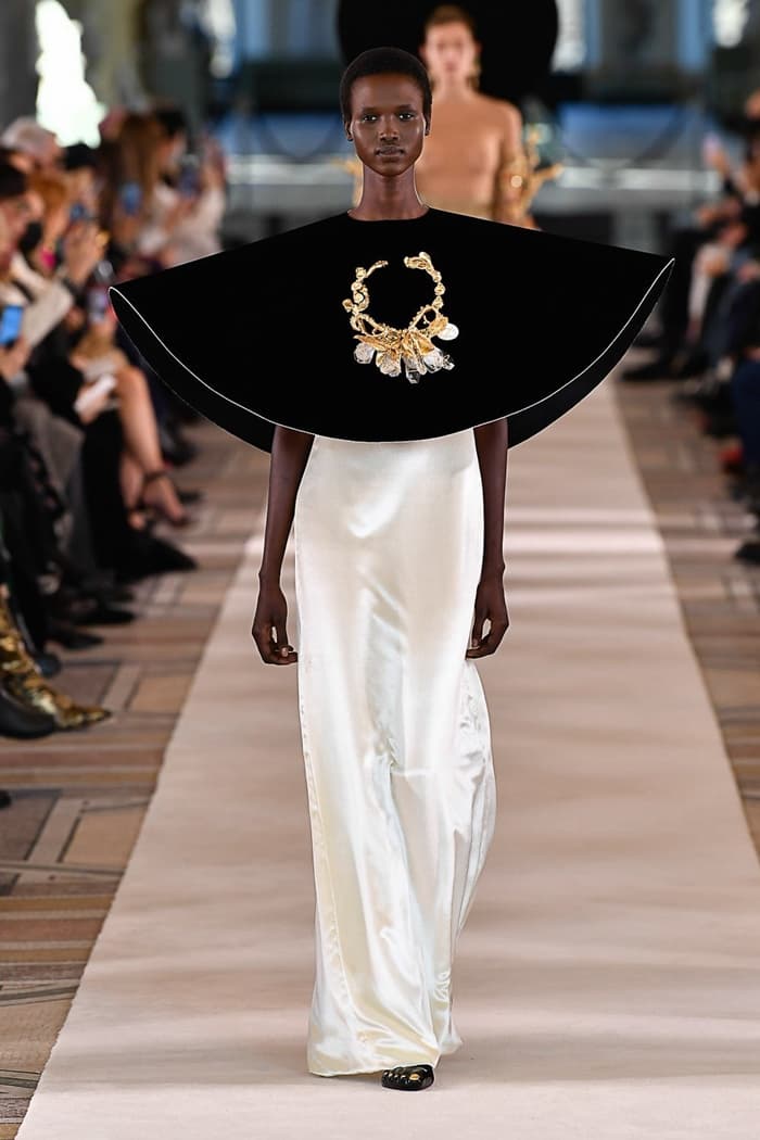 เป็นประจำทุกซีซั่นที่ Schiaparelli จะเป็นโชว์เปิดปารีสโอตกูตูร์แฟชั่นวีกอย่างเป็นทางการ ครั้งนี้ Daniel Roseberry ดีไซเนอร์ชาวอังกฤษ ยังคงเลือกโทนสีดำ ทอง ขาว มาใช้เป็นแกนหลักเช่นเคย นอกจากนี้ยังเลือกใช้รายละเอียดซิปอันเป็นเอกลักษณ์ของแบรนด์มาสอดแทรกลงในงานตัดเย็บชั้นสูง ในส่วนของเสื้อผ้าโดดเด่นด้วยการตัดเย็บโครงสร้างช่วงอก เอว และไหล่ รวมถึงการใช้ลายปักและลายพิมพ์ บราทรงโคน และหมวกปีกกว้าง เสริมความโดดเด่นด้วยชุดเดรสซิลูเอตเข้าเอวแบบคอร์เซต มีการสอดแทรกรายละเอียดงานประติมากรรม งานปักอัญมณีขั้นสูง กระเป๋าที่ใส่รายละเอียดขาเปรียบดั่งเฟอร์นิเจอร์จากยุคคลาสสิก พร้อมทั้งศิลปะที่ได้รับแรงบันดาลใจจากดวงดาวในระบบสุริยะจักรวาลอันเป็นสัญลักษณ์ของคอลเล็กชั่นนี้ที่เขานำเสนอมาตั้งแต่ภาพโปรโมตก่อนเริ่มโชว์