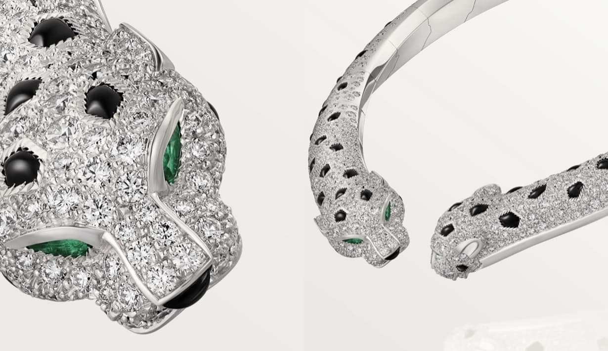 จีซูเลือกสวมจิวเวลรีจากคอลเล็กชั่น Panthère de Cartier ได้แก่สร้อยดีไซน์เสือแพนเตอร์สองหัว รังสรรค์ตัวเรือนด้วยทองคำขาว 18K ประดับด้วยเพชรทรงบริลเลียนต์ 1,478 เม็ดน้ำหนักรวมกว่า 10.53 กะรัตและนัยน์ตามรกตเม็ดงามอีก 2 คู่ แมตช์เข้ากับแหวนหัวเสือแพนเตอร์ประดับเพชรทั้งเรือน รวมถึงนาฬิกาข้อมือ Panthère de Cartier บอกเลขแบบโรมัน ขับเคลื่อนด้วยระบบควอตช์ ตัวเรือนสเตนเลส สตีลกับหน้าปัดทรงสี่เหลี่ยมล้อมเพชร โดดเด่นด้วยเข็มรูปทรงดาบสีน้ำเงินเข้ากับเม็ดมะยมสปิเนลสีน้ำเงินอันเป็นเอกลักษณ์ของคาร์เทียร์ เป็นลุคที่สะท้อนความสง่างามและความเฉียบคมของจีซูได้อย่างทรงพลัง