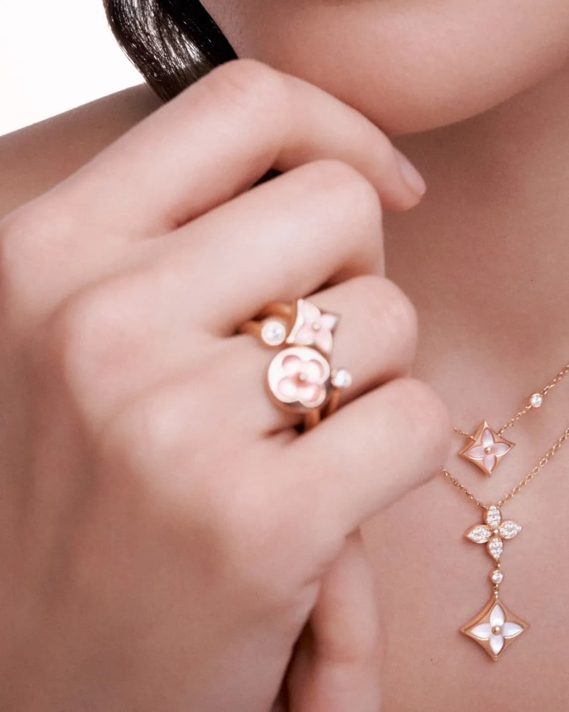 มิติความงดงามของ Louis Vuitton ปรากฏขึ้นอย่างหลากหลายและเปี่ยมไปด้วยมิติที่น่าค้นหา สำหรับการเผยโฉมครั้งใหม่เมซงนำเสนอคอลเล็กชั่น Louis Vuitton Color Blossom คอลเล็กชั่นเปิดตัวครั้งแรกในปี 2015 ดีไซน์ที่ยกย่องประวัติศาสตร์ของเมซงอย่างลึกซึ้งจากแรงบันดาลใจดอกโมโนแกรมที่ Georges-Louis Vuitton รังสรรค์ขึ้นในปี 1896 ได้ถูกนำมาออกแบบให้ทันสมัยยิ่งขึ้นเพิ่มมิติที่แตกต่างพร้อมสีสันสดใส สะท้อนความงามผ่านวัสดุล้ำค่า อาทิ ไข่มุกขาวระยิบระยับ ไข่มุกชมพูอ่อน คาร์เนเลียนสีแดงสด และมาลาไคต์สีเขียวเข้ม ผสานกับโรสโกลด์ ขณะที่ความลึกลับของโอนิกซ์และเฉดสีฟ้าน้ำทะเลของอะเมซอไนต์เด่นชัดขึ้นด้วยทองคำเหลืองอร่าม ลวดลายที่เป็นที่รู้จักเหล่านี้สะท้อนความงามของอัญมณีผ่านดีไซน์ที่ไร้กาลเวลา
