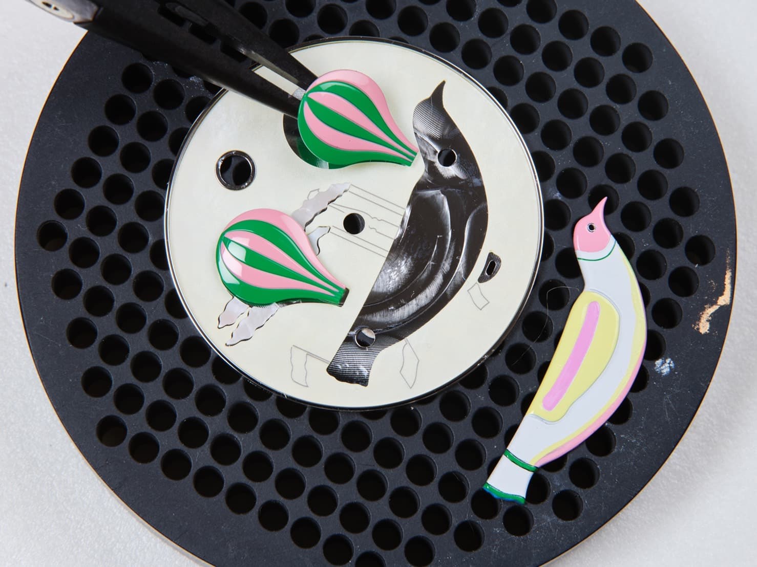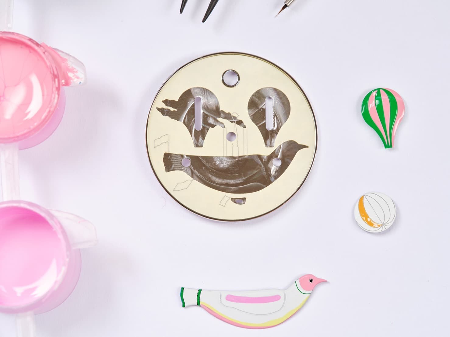 บรรจุแนวความคิดทั้งหมดนี้ลงในตัวเรือนทองคำขาวขนาด 38 มิลลิเมตร ขับเคลื่อนด้วยกลไกที่รังสรรค์จากโรงงานของแอร์เมสโดยเฉพาะ ถ่ายทอดภาพวาดลงบนหน้าปัดที่ทำจาก Mother of Pearl โดดเด่นด้วยสีขาวลายโฮโลกราฟิกรูปควันจากบอลลูนลมร้อนสีชมพูและเขียว ที่ลอยคู่กับกอนโดลารูปนกจากทองคำขาว ซึ่งเป็นสัญลักษณ์แห่งเสรีภาพ อวดงานฝีมือที่มีมิติเสมือนภาพแอนิเมชั่นด้วยลูกบอลลูนในเฉดต่างๆ อย่างสีเหลืองและน้ำเงิน ล็อกผลงานด้วยกระจกแซฟไฟร์สีใสทั้งด้านหน้าและด้านหลัง คาดสายรัดพร้อมเดินทางด้วยสายหนัง ‘Chantilly Alligator’ สีขาว ที่มีจำนวนเพียง 24 เรือนเท่านั้น พร้อมพานักเดินทางคนสำคัญของแอร์เมสไปหาประสบการณ์ที่พิเศษไม่เหมือนใคร